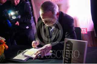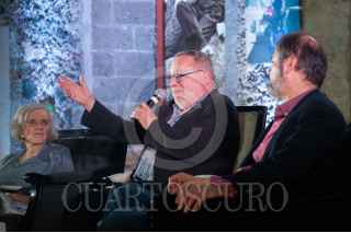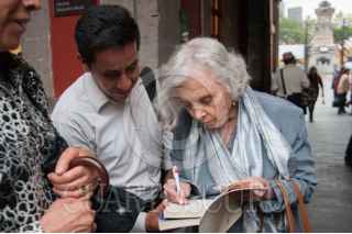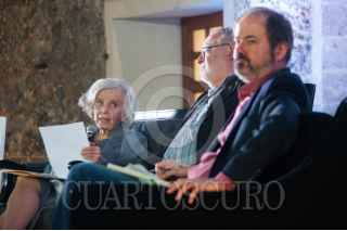 CIUDAD DE MÉXICO, 12MAYO2016.- El escritor Fernando Savater, acompañado por Elena Poniatowska y Juan Villoro Ruiz, presentó su libro "Aquí viven los leones" en el patio Octavio Paz de la biblioteca México. Al finalizar el evento, el filósofo español firmó autógrafos a los lectores asistentes. FOTO: DIEGO SIMÓN SÁNCHEZ /CUARTOSCURO.COM