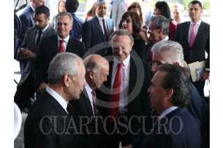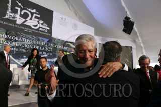 CIUDAD DE MÉXICO, 13MAYO2016.- Gerardo Ruiz Esparza, titular de la SCT, acompañado de los ex secretarios Daniel Díaz Díaz, Emilio Gamboa Patrón, Guillermo Ortiz, Pedro Cerisola y Luis Manuel Enrique Téllez Kuenzler durante la conmemoración del 125 aniversario de la creación de la SCT. FOTO: SAÚL LÓPEZ /CUARTOSCURO.COM