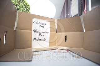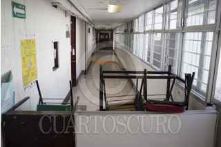 CIUDAD DE MÉXICO 13MAYO2016.- Al interior de la Vocacional 5 “Benito Juárez García” del Instituto Politécnico Nacional, estudiantes que mantienen tomadas las instalaciones, colocaron barricadas con mesas y sillas. Asimismo, continuarán con las votaciones a favor o en contra del paro hasta las 19:00 horas, todos los alumnos podrán ingresar por la puerta lateral para ejercer su voto. FOTO: TERCERO DÍAZ/ CUARTOSCURO.COM