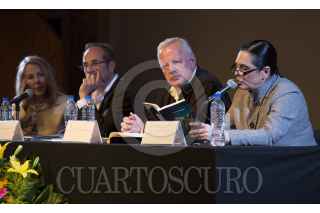 CIUDAD DE MÉXICO, 14MAYO2016.- Silvia Lemus viuda del escritor Carlos Fuentes, Ignacio Padilla, Federico Reyes Heroles y Cecilia Toussaint, encabezaron la actividad “Carlos Fuentes está hoy aquí”, con el propósito de recordarlo a cuatro años de su fallecimiento. FOTO: TERCERO DÍAZ/CUARTOSCURO.COM