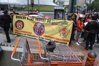 CIUDAD DE MÉXICO, 14MAYO2016.- Integrante del Sindicato Independiente Nacional Democrático de Jornaleros Agrícolas en compañía de organizaciones campesinas y colectivos, realizaron una manifestación en la entrada de Chedraui-Cotsco de Polanco, para promover un boicot en contra de la comercializadora de bayas en los Estados Unidos de América "Driscoll's", ya que es una de las causantes de las condiciones laborales de los jornaleros en San Quintín, Baja California. FOTO: ADOLFO VLADIMIR /CUARTOSCURO.COM
