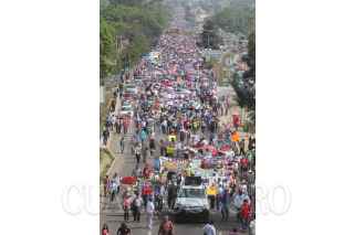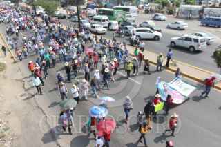 OAXACA, OAXACA., 15MAYO2016.- Miles de profesores pertenecientes a la sección 22 de la Coordinadora Nacional de los Trabajadores de la Educación (CNTE) realizan una marcha hacia el zócalo de la ciudad donde instalarán un plantón, como parte de la jornada iniciada a nivel nacional en cumplimiento de los acuerdos de la Asamblea Nacional Representativa de la coordinadora. Los mentores además exigen que el gobierno de Gabino Cué reciba su pliego petitorio de 9 puntos, la liberación de los presos políticos y el cese al hostigamiento del que son víctimas. FOTO: ARTURO PÉREZ ALFONSO /CUARTOSCURO.COM