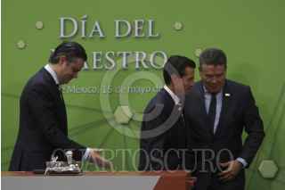 CIUDAD DE MÉXICO, 15MAYO2016.- Debido a la contingencia Fase 1, el evento del Día del Maestro que se realizaría en la explanada del monumento a Francisco I. Madero de la residencia oficial de Los Pinos se tuvo que trasladar a el salón Adolfo López Mateos, ya que las medidas que se contemplan en esta fase es la no realización de actividades al aire libre. FOTO: MOISÉS PABLO /CUARTOSCURO.COM