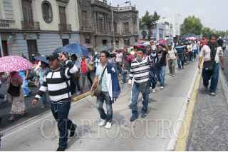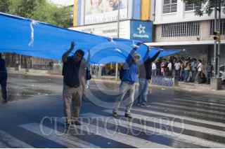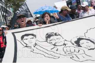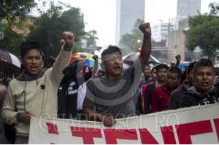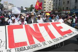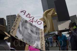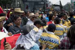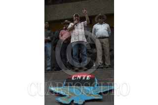 CIUDAD DE MÉXICO, 15MAYO2016.- Con motivo del Día del Maestro cientos de docentes integrantes de la Coordinadora Nacional de Trabajadores de la Educación marcharon de las inmediaciones del metro San Cosme a la Secretaría de Gobernación, donde planeaban instalar un plantón en repudio a la Reforma Educativa. Adelfo Gómez, secretario general de la sección 7 de la CNTE, ofreció un mitin en las inmediaciones del periódico “El Universal” en donde reitero que continuarán con el movimiento hasta que no se restituya a los maestros sancionados por no presentarse a la evaluación docente. Elementos de la Secretaría de Seguridad pública les restringieron el acceso a la secretaria a los manifestantes. FOTO: GALO CAÑAS /CUARTOSCURO.COM