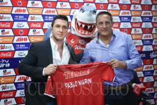 VERACRUZ, VERACRUZ, 16MAYO16.- El presidente del Club Tiburones Rojos, Fidel Kuri Mustieles presentó de manera oficial al nuevo director técnico, Pablo Marini en la sala de prensa del estadio Luis Pirata Fuente. FOTO: ILSE HUESCA /CUARTOSCURO.COM