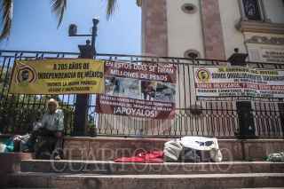CULIACÁN, SINALOA, 17MAYO2016.- Alrededor de 50 indígenas Tarahumaras realizan un plantón en la catedral de la ciudad en busca de apoyo por parte del gobierno para tener mejores condiciones de vida, educación, clínicas, materiales para sus hogares y la rehabilitación del camino que va de Sinaloa de Leyva al ejido Cuitabaco de donde son provenientes. Después de varias ocasiones de bajar de la sierra de Sinaloa que colinda con Chihuahua, decidieron establecer un plantón indefinido para que el gobierno cumpla de verdad con los acuerdos establecidos anteriormente. Saturnino García comisionado municipal del ejido, menciona que es inaceptable que en esta temporada electoral se gasten millones de pesos y no se tengan unos cuantos para el apoyo que por derecho les corresponde. FOTO: RASHIDE FRIAS /CUARTOSCURO.COM