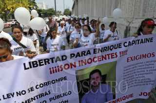 VERACRUZ, VERACRUZ, 17MAYO16.- Familiares, amigos y conocidos de Enrique Capitaine se manifestaron en el Juzgado Tercero de Primera Instancia exigiendo al juez que revise nuevamente las pruebas y a la joven demandante que deje de mentir. FOTO: ILSE HUESCA /CUARTOSCURO.COM