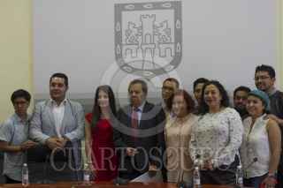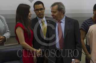 CIUDAD DE MÉXICO, 17MAYO2016.- Porfirio Muñoz Ledo, secretario ejecutivo del grupo redactor de la Constitución de la Ciudad de México, se reunió con jóvenes quienes le entregaron sus propuestas para que sean consideradas en la Constitución de la Ciudad de México. El documento le fue entregado por María Fernanda Olvera Cabrera, directora del Instituto de la Juventud local, en el salón oval del Antiguo Palacio del Ayuntamiento. FOTO: MOISÉS PABLO /CUARTOSCURO.COM