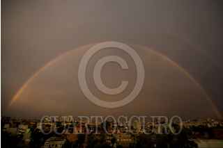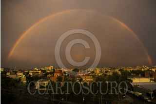 CIUDAD DE MÉXICO, 17MAYO2016.- Luego de una ligera lluvia se pudo aprecia el arcoiris en la ciudad que contrasto con los días contaminados que había vivido la capital. FOTO: LUIS MEJÍA /CUARTOSCURO.COM