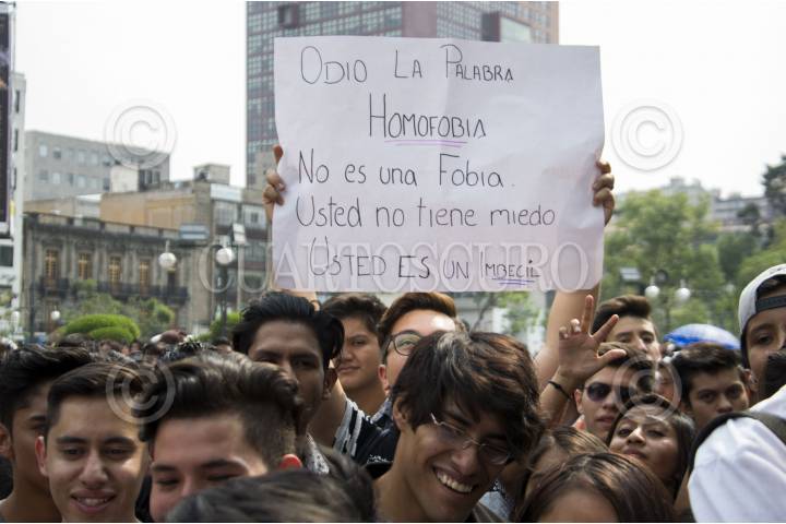 CIUDAD DE MÉXICO, 17MAYO2016.- Con motivo del Día Internacional contra la Homofobia, la Transfobia y la Bifobia, celebración que conmemora la eliminación de la homosexualidad de la lista de enfermedades mentales por parte de la Asamblea General de la Organización Mundial de la Salud (OMS), cientos de integrantes a la comunidad LGBTTTI participaron en el “Besotón 2016” frente al Palacio de Bellas Artes. Los jóvenes regalaron besos y abrazos como acto de concientización y protesta ante la Homofobia. FOTO: GALO CAÑAS /CUARTOSCURO.COM