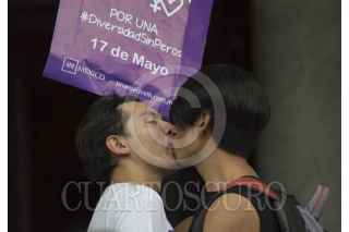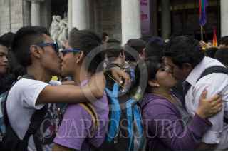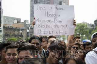 CIUDAD DE MÉXICO, 17MAYO2016.- Con motivo del Día Internacional contra la Homofobia, la Transfobia y la Bifobia, celebración que conmemora la eliminación de la homosexualidad de la lista de enfermedades mentales por parte de la Asamblea General de la Organización Mundial de la Salud (OMS), cientos de integrantes a la comunidad LGBTTTI participaron en el “Besotón 2016” frente al Palacio de Bellas Artes. Los jóvenes regalaron besos y abrazos como acto de concientización y protesta ante la Homofobia. FOTO: GALO CAÑAS /CUARTOSCURO.COM