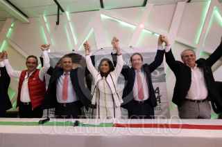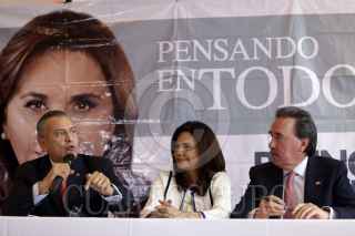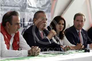 PUEBLA, PUEBLA, 17MAYO2016.- Manlio Fabio Beltrones, dirigente nacional del PRI y el senador Emilio Gamboa, acompañaron a la candidata del PRI a la gubernatura de Puebla; Blanca Alcalá, durante rueda de prensa en la que anunciaron que no permitirán que el gobierno estatal se involucre en la elección del próximo 5 de junio. FOTO: HILDA RIOS /CUARTOSCURO.COM