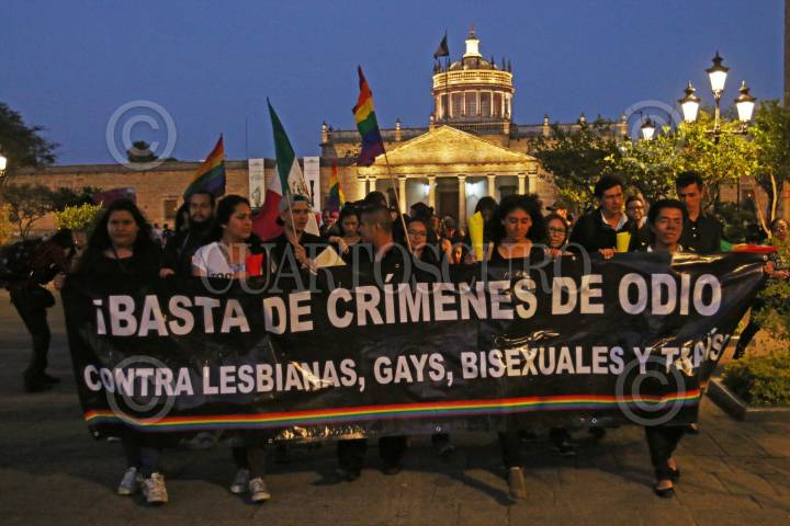 GUADALAJARA, JALISCO, 17MAYO2016.- Esta noche para conmemorar el día nacional de la lucha contra la homofobia, decenas de personas de la comunidad LGBT del estado, realizaron una marcha denominada del “Silencio”, saliendo del Instituto Cultural Cabañas hacia Plaza de Armas. FOTO : FERNANDO CARRANZA GARCIA / CUARTOSCURO.COM