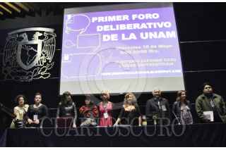 CIUDAD DE MÉXICO, 18MAYO2016.- Integrantes de diversas organizaciones estudiantiles, magisteriales, académicas y sociales, asistieron a la inauguración del Primer Foro Deliberativo de la UNAM, que se realizó en el Auditorio Alfonso Caso de Ciudad Universitaria. La primer mesa debatió en torno a temas de derechos humanos. FOTO: MARÍA JOSÉ MARTÍNEZ /CUARTOSCURO.COM