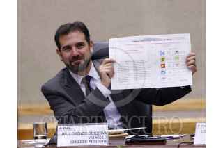 CIUDAD DE MÉXICO, 18MAYO2016.- Lorenzo Córdova Vianello, consejero presidente del INE, muestra la boleta para votación de las Candidatas y los Candidatos a la Asamblea Constituyente. FOTO: CUARTOSCURO.COM