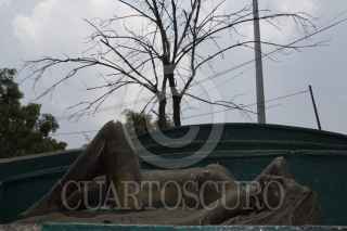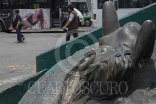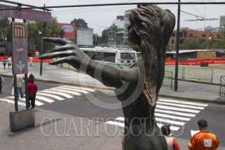 CIUDAD DE MÉXICO, 19MAYO2016.- Las esculturas "Soñando" y "Pensando en ti" que se ubican en las inmediaciones del paradero del metro Chapultepec, tras el retiro de los los puestos que copaban este espacio se hicieron más visibles a la vista de la gente que pasa por ahí. Las dos muestran deterioro en su patinado, aunque en el caso de "Soñando" es más evidente esta situación, autoridades de los Centros de Transferencia Modal (CETRAM), indicaron que autoridades del Instituto Nacional de Bellas Artes ya están estudiando su retiro para su conservación, aunque su destino real se desconoce. FOTO: MOISÉS PABLO /CUARTOSCURO.COM