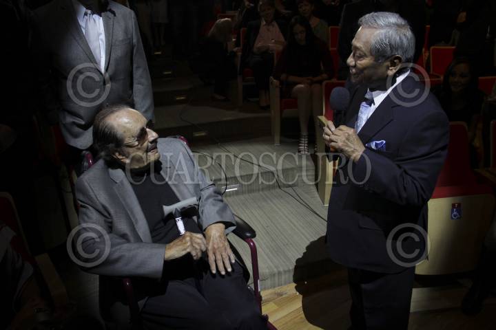 CIUDAD DE MÉXICO, 19MAYO2016.- El periodista Ricardo Rocha entrego al arquitecto Mariano Rivera hijo de la compositora Consuelo Velazquez el premio trayectoria de la Sociedad de Autores y Compositores de México (SACM), ayer en el Centro Cultural Roberto Cantoral. FOTO: ANTONIO CRUZ /CUARTOSCURO.