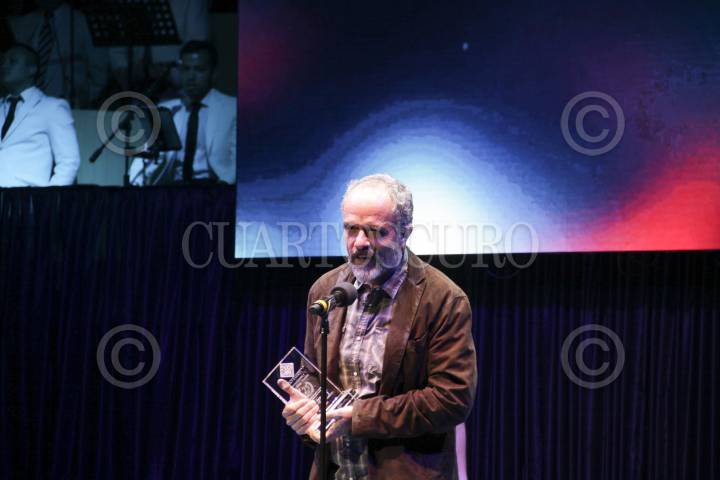 CIUDAD DE MÉXICO, 19MAYO2016.- El periodista Ricardo Rocha entrego al arquitecto Mariano Rivera hijo de la compositora Consuelo Velazquez el premio trayectoria de la Sociedad de Autores y Compositores de México (SACM), ayer en el Centro Cultural Roberto Cantoral. FOTO: ANTONIO CRUZ /CUARTOSCURO.