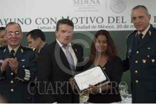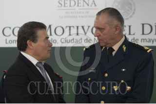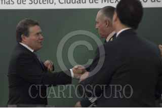 CIUDAD DE MÉXICO, 20MAYO2016.- Salvador Cienfuegos Zepeda, secretario general de la Defensa Nacional, y Juan Díaz de la Torre, presidente nacional del Sindicato Nacional de Trabajadores de la Educación, encabezaron el desayuno conmemorativo al Día del Maestro. En el evento Díaz de la Torre afirmó que la Reforma Educativa es un elemento importante para el Estado, así como que los verdaderos maestros se encuentran en luchando dentro de las aulas. El presidente del SNTE, el secretario de la defensa y Ángel Prior Valencia, rector de la Universidad del Ejército y Fuerza Aérea, entregaron reconocimiento a los maestros destacados. En la Salvador Cienfuegos Zepeda y Juan Díaz de la Torre. FOTO: GALO CAÑAS /CUARTOSCURO.COM