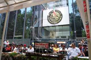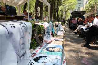 CIUDAD DE MÉXICO, 20MAYO2016.- Padres de los 43 estudiantes normalistas desaparecidos de la Escuela Normal Rural de Ayotzinapa se reunieron afuera de las instalaciones de la Procuraduría General de la República (PGR) en donde exigieron la aparición de Tomás Zerón, titular de la Agencia de Investigación Criminal de la PGR a quien acusan de haber construido a su favor la versión histórica de la desaparición de los normalistas. Esta mañana realizaron también una protesta en donde mantienen un campamento sobre Av. Reforma. FOTO: MARÍA JOSÉ MARTÍNEZ /CUARTOSCURO.COM