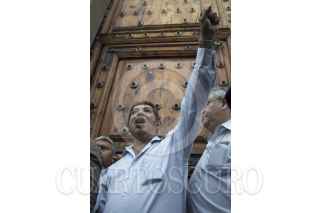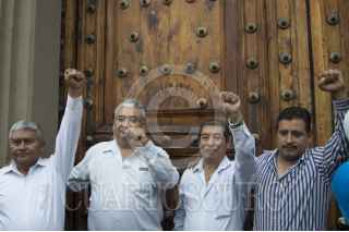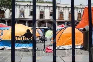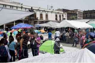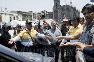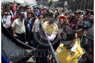 CIUDAD DE MÉXICO, 20MAYO2016.- Maestros integrantes de la Coordinadora Nacional de Trabajadores de la Educación se manifestaron a las afueras de la Secretaria de Educación Pública donde mantiene un plantón tras ser desalojados de la avenida Bucareli. Rúben Nuñez, dirigente de la sección 22, Enrique Enríquez, dirigente de la sección 9, Adelfo Gómez, dirigente de la sección 7 y Reyes Ramos, dirigente de la sección 14, dieron conferencia de prensa en donde anunciaron movilizaciones los días Lunes, Miércoles y Viernes hasta que no exista un diálogo con la Secretaria de Educación Pública. Los maestros se mantienen encapsulados por oficiales de la Secretaría de Seguridad Pública. FOTO: GALO CAÑAS /CUARTOSCURO.COM