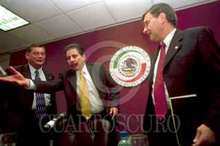 Jesús Ortega, coordinador de la fracción perredista en la Cámara de Senadores y Luis Mier y Teran Casanueva (der.), rector de la Universidad Autónoma Metropolitana (UAM) firmaron un acuerdo de cooperación para elaborar propuestas de interes nacional. FOTO: Oswaldo Ramírez/CUARTOSCURO.COM
