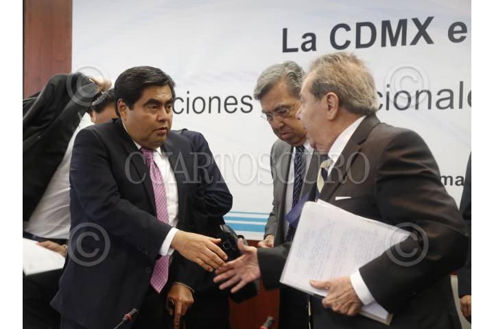CIUDAD DE MÉXICO, 23MAYO2016.- Miguel Barbosa, coordinador de los senadores del PRD; Cuauhtémoc Cárdenas, coordinador de Asuntos Internacionales del gobierno capitalino, y Porfirio Muñoz Ledo, secretario ejecutivo del grupo redactor de la Constitución de la Ciudad de México, participaron en el seminario “La CDMX en el mundo: las relaciones internacionales en la nueva Constitución”. FOTO: CUARTOSCURO.COM