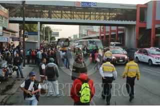 CIUDAD DE MÉXICO, 24MAYO2016.- Debido al deslizamiento de tierra arenosa en el cruce de Calzada de Tlalpan y Río Churubusco, donde se construye un paso a desnivel, quedó suspendido el servicio en la Línea 2 del Metro, entre la terminal Taxqueña y la estación Xola, en ambos sentidos, informó la Secretaría de Movilidad. Con el fin de atender a los usuarios que de manera cotidiana utilizan ese transporte, la Red de Transporte de Pasajeros (RTP) dispuso de 200 unidades que realizarán el recorrido entre Taxqueña y Xola, en ambos sentidos, de manera gratuita. Mientras el servicio del Sistema de Transporte Colectivo Metro, entre Xola y la terminal Toreo, se realizará de manera normal. FOTO: ARMANDO MONROY /CUARTOSCURO.COM