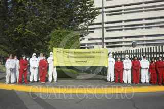 CIUDAD DE MÉXICO, 24MAYO2016.- Activistas de Greenpeace acudieron a las oficinas corporativas de Grupo Bimbo para entregar información a los trabajadores de la empresa, sobre la forma en la que el modelo de agricultura industrial que abastece a la marca está dañando la salud de las personas y el medio ambiente e invitarlos a sumarse a la petición que han firmado más de 25 mil personas para que la panificadora más grande del mundo se comprometa públicamente a transitar hacia la agricultura ecológica. Alrededor de 40 integrantes desplegaron una manta con la leyenda“Por la salud de tus consumidores y el planeta #BimboTeEstamosEsperando” y explicaron a la gente que la empresa utiliza ingredientes que en su cultivo emplean plaguicidas y fertilizantes sintéticos en exceso, algunos de ellos altamente tóxicos para la salud de los agricultores, además de que esas sustancias erosionan la tierra y contaminan el agua. FOTO: ADRIÁN HERNÁNDEZ /GREENPEACE/CUARTOSCURO.COM