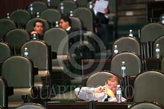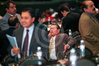 Rafael Rodríguez Barrera, líder de la bancada priísta de la Cámara de Diputados, conversa con sus compañeros en un punto de acuerdo, en la sesión de este día. FOTO: Victoria Valtierra/CUARTOSCURO.COM