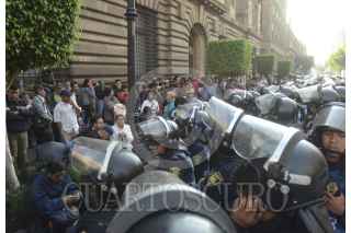 CIUDAD DE MÉXICO, 25MAYO2016.- Un grupo de maestros de la Coordinadora Nacional de Trabajadores de la Educación (CNTE), intentaron llegar al zócalo capitalino para manifestarse contra la Reforma Educativa fueron encapsulados por granaderos de la Secretaría de Seguridad Pública (SSPCDMX), en la calle de 5 de Mayo y Eje Central. FOTO: ARMANDO MONROY /CUARTOSCURO.COM