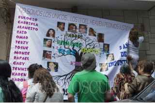 CIUDAD DE MÉXICO, 26MAYO2016.- Familiares de los 13 jóvenes desaparecidos del Bar “Heaven”, ubicado en la delegación Cuauhtémoc, se manifestaron a tres años de los hechos con una misa y un lanzamiento de globos blancos para recordad a los muchachos. Los asistentes colocaron flores y carteles a las entradas del ya clausurado establecimiento. FOTO: GALO CAÑAS /CUARTOSCURO.COM