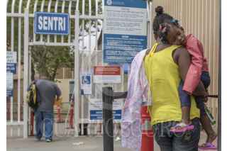 TIJUANA, BAJA CALIFORNIA, 26MAYO2016.- Cientos de Africanos y haitianos llegaron a Tijuana para pedir asilo político a Estados Unidos. Se estima que el grupo de extranjeros acudieron a temprana hora a las inmediaciones de la garita peatonal de San Ysidro, con la intensión de poder ser entrevistados por los oficiales migratorios. De acuerdo al cónsul de Estados Unidos en Tijuana, algunos de ellos ya se encuentran en territorio estadounidense, además comentó que se estiman que son cerca de 600 las personas que han solicitado refugio debido a que vienen huyendo de la situación económica, política y social de sus países. Algunos de los integrantes del grupo de migrantes comentaron que realizaron una largo viaje de tres meses para llegar hasta esta frontera, atravesando algunos países centroamericanos y todo el territorio nacional. FOTO: CHRISTIAN SERNA /CUARTOSCURO.COM