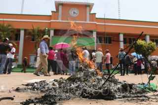 TUXTLA GUTIÉRREZ, CHIAPAS, 27MAYO2016.- Maestros de la Sección 7 de la CNTE, estudiantes universitarios y normalistas, bloquearon las entradas de edificios estatales como protesta contra la reforma educativa. FOTO: JESÚS GARCÍA /CUARTOSCURO.COM