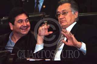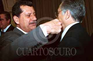 Enrique Jackson presidente de la Mesa Directiva del Senado, se despide de Diego Fernandez de Cevallos, al terminó de la sesión en la Cámara Alta. FOTO: Eunice Adorno/CUARTOSCURO.COM