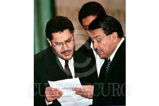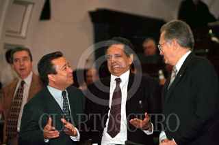Manuel Bartlet, Fidel Herrera y Genaro Borrego, con en el pleno del Senado de la República en la cual se aprobó por mayoría, reformas a varias leyes relacionadas con el Sistema de Ahorro para el Retiro. FOTO: Eunice Adorno/CUARTOSCURO.COM