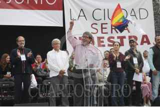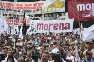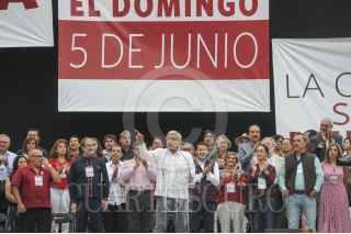 CIUDAD DE MEXICO, 28MAYO2016.- Andrés Manuel López Obrador, presidente del partido Movimiento de Regeneración Nacional (Morena), Martí Batres, presidente de Morena en la ciudad de México, y Ricardo Monreal, jefe de la delegación Cuahtémoc, encabezaron el cierre de campaña de los candidatos por Morena a la Asamblea Constituyente, en la explanada de la Plaza de las Tres Culturas de Tlatelolco. FOTO: DIEGO SIMÓN SÁNCHEZ /CUARTOSCURO.COM