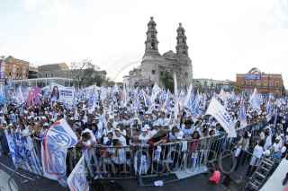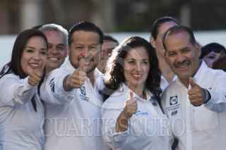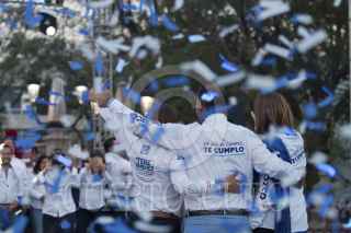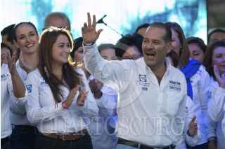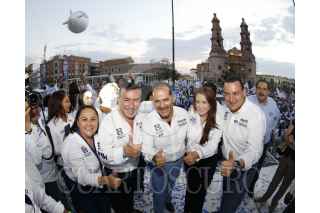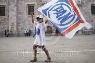 AGUASCALIENTES, AGUASCALIENTES,28MAYO2016.- Margarita Zavala y el senador Fernando Herrera acompañaron en su cierre de campaña al candidato panista a la gubernatura de Aguascalientes, Martín Orozco Sandoval. Cerca de 3 mil personas se reunieron en la plaza principal de la capital. FOTO: YOLIZTLI RAMOS /CUARTOSCURO.COM