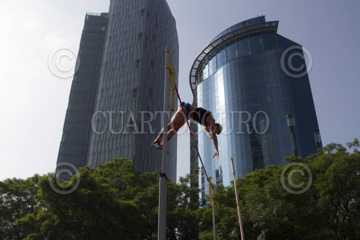 CIUDAD DE MÉXICO, 29MAYO2016.- Sobre avenida Reforma se realizó el Tercer Encuentro Internacional de Salto con Garrocha, el ganador en la rama varonil y femenil se alzaron con un boleto director para las próximas elecciones. Mark Hollis se impuso en los caballeros. FOTO: MOISÉS PABLO /CUARTOSCURO.COM