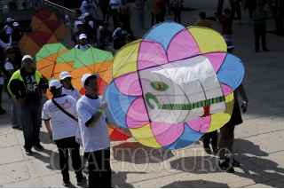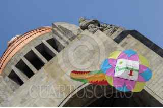 CIUDAD DE MÉXICO 29MAYO2016.- En la explanada del monumento a la Revolución, integrantes del Instituto Electoral del Distrito Federal, elevaron un papalote monumental con forma de Xiuhcóatl, una serpiente de fuego que era el arma poderosa de la cultura Mexica y representa los orígenes de la capital del país, la cual es el emblema de difusión de la elección de la Asamblea Constituyente para el domingo 5 de junio, esto para promover el voto entre los ciudadanos. FOTO: DIEGO SIMÓN SÁNCHEZ /CUARTOSCURO.COM