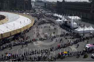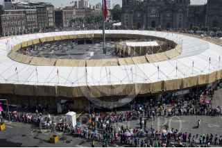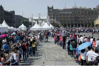 CIUDAD DE MÉXICO, 29MAYO2016.- Miles de personas hicieron durante varias horas largas filas para accesar a la estructura circular, instalada en la plancha del Zócalo, en donde se celebra la octava edición de la Feria de las Culturas Amigas. FOTO: GALO CAÑAS /CUARTOSCURO.COM