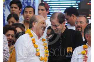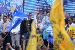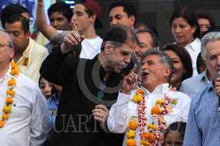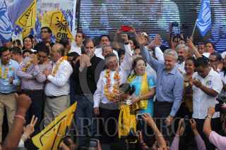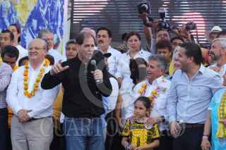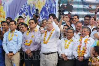 OAXACA, OAXACA., 29MAYO2016.- José Antonio Estefan Garfias, candidato a la gubernatura por la coalición que conforman el PAN y PRD cerró su campaña este domingo en la cuidad de Oaxaca con un mitin en el que estuvo acompañado del presidente nacional del PRD, Agustín Basave, del secretario General del PAN, Damián Zepeda, así como los gobernadores de Morelos y Michoacán, Graco Ramírez y Silvano Aureoles. FOTO: ARTURO PÉREZ ALFONSO /CUARTOSCURO.COM
