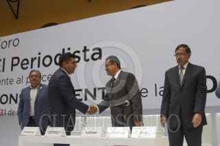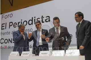 CIUDAD DE MÉXICO, 30MAYO2016.- Luciano Jimeno Huanosta, diputado del Partido Humanista; Carlos Alfonso Candelaria López, presidente de la comisión especial para garantizar el ejercicio periodístico en la Ciudad de México, Leonel Luna Estrada, presidente de la Comisión de Gobierno, y José Antonio Mirón Reyes, subprocurador jurídico de Derechos Humanos, en la inauguración del foro "El Periodista frentes al proceso Constituyente de la CDMX", en el Palacio de al Autonomía. FOTO: MOISÉS PABLO /CUARTOSCURO.COM