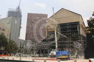 CIUDAD DE MÉXICO, 30MAYO2016.- Trabajadores continúan con la construcción de la réplica de la Capilla Sixtina que está siendo recreada en su totalidad a la original, en la explanada del Monumento a la Revolución. FOTO: SAÚL LÓPEZ /CUARTOSCURO.COM
