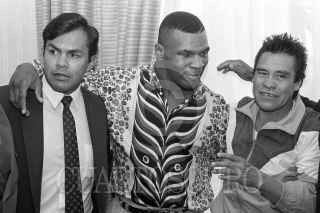 Ocho de enero de 1991.-Pipino Cuevas, Mike Tayson y Ruben Olivares. Foto: Julio Candelaria/CUARTOSCURO