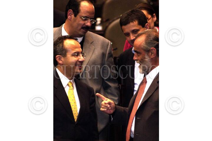El senador Diego Fernández de Cevallos, asistió a la clausura del periodo ordinario de sesiones en San Lázaro, donde fue recibido por sus correligionarios de la cámara baja. Esta fue la primera vez que los legisladores sacan el paquete presupuestal a tiempo en seis años. FOTO: Juan Pablo Zamora/CUARTOSCURO.COM