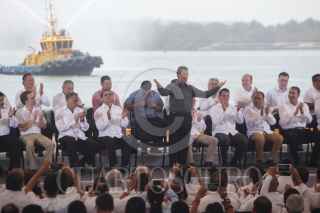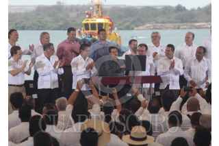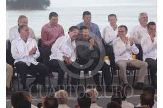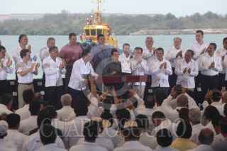 LÁZARO CÁRDENAS, MICHOACÁN, 21MAYO2016.- El presidente de la república, Enrique Peña Nieto, asistió al puerto para presidir la promulgación de la Ley Federal de Zonas Económicas Especiales. El evento fue presidido también por el gobernador, Silvano Aureoles Conejo y 7 gobernadores que también serán beneficiados Oaxaca, Puebla, Campeche, Chiapas, Hidalgo, Guerrero, Tabasco y Yucatán. FOTO: ALAN ORTEGA /CUARTOSCURO.COM