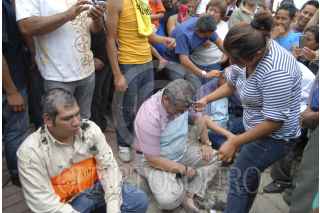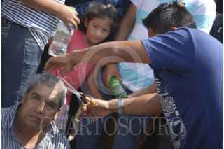 COMITÁN, CHIAPAS, 31MAYO2016.- Integrantes de la Organización Proletaria Independiente Emiliano Zapata (OPIEZ), quien dice apoyar el movimiento magisterial de la CNTE, raparon a maestros que se encuentran laborando normalmente cuando se dirigían a Tuxtla Gutiérrez a entregar documentación para poder cobrar su quincena. En el estado miles de profesores se encuentran en paro de labores en lo que ellos han llamado su lucha en contra de la Reforma Educativa. FOTO: TOÑO AGUILAR /CUARTOSCURO.COM