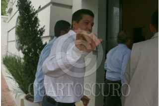 CIUDAD VICTORIA, TAMAULIPAS 01JUNIO2016.- El ex Presidente de México Felipe Calderón Hinojosa se reunió en privado con el candidato del PAN a la gubernatura del estado Francisco García Cabeza de Vaca y con empresarios en el Casino Victorense de esta capital, durante la reunión efectivos del estado mayor presidencial y policía federal resguardaron el inmueble. FOTO: SAÚL LÓPEZ /CUARTOSCURO.COM