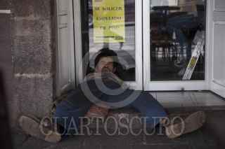 MORELIA, MICHOACÁN, 01JUNIO2016.- Un indigente toma un descanso a las afueras de una tienda de la cadena OXXO en el centro de la capital michoacana. FOTO: ALAN ORTEGA /CUARTOSCURO.COM